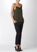 Khaki green top in a silk blend with a lace detail on the front. Rounded neckline and thin straps. Straight fit.\